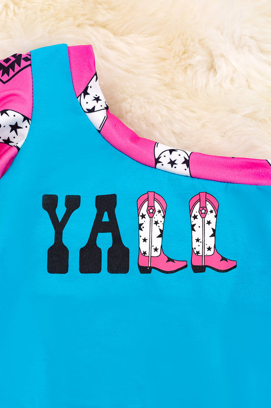 Yee haw printed tunic & fuchsia shorts. OFG50877