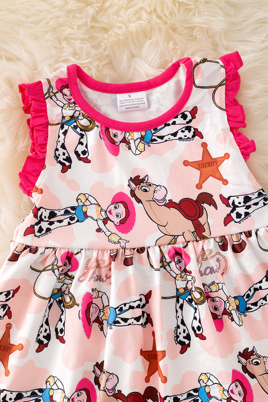 Yee Haw! Pink & orange western printed dress. DRG52621