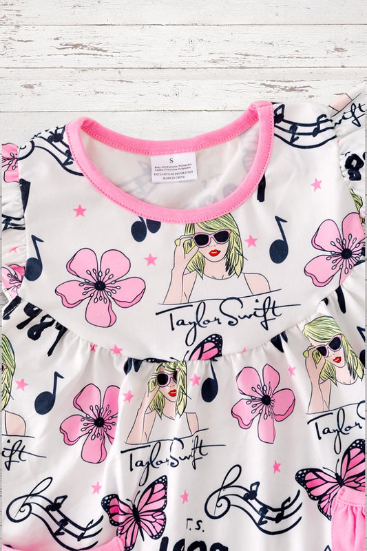 WHITE SWIFTIE TUNIC WITH MATCHING SHORTS.