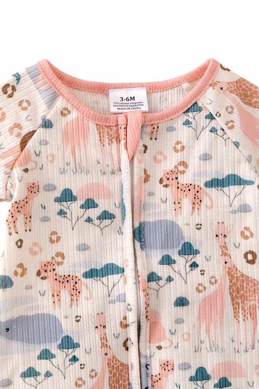 Adventure in the Safari girls coral baby romper with dual zipper.