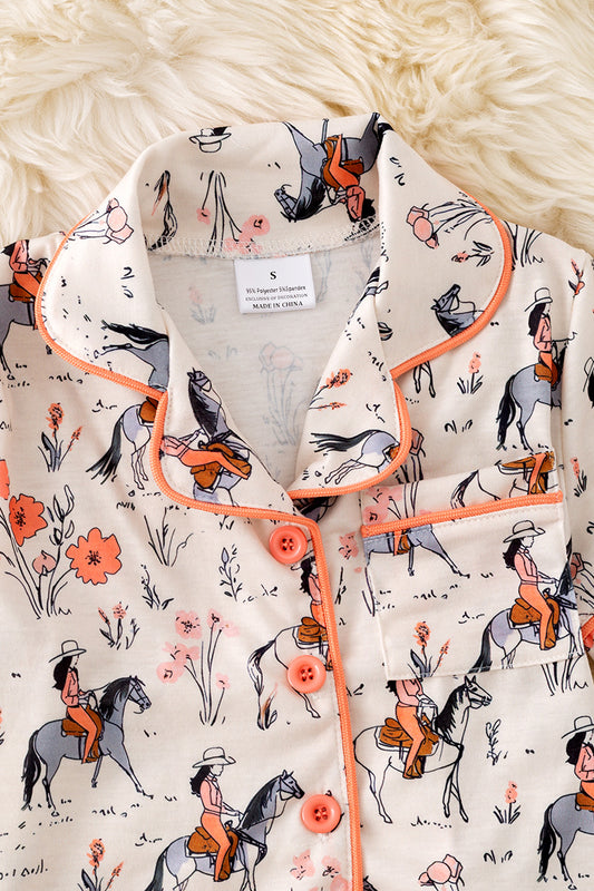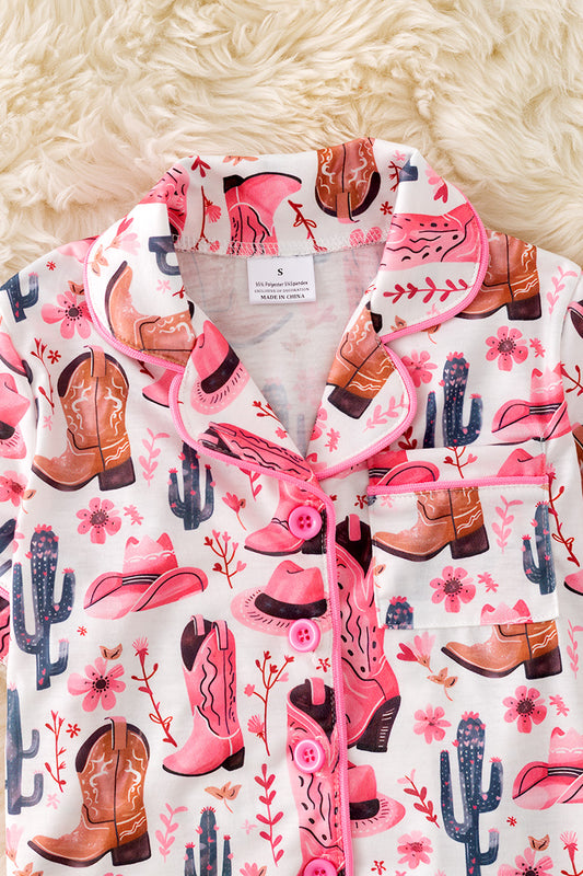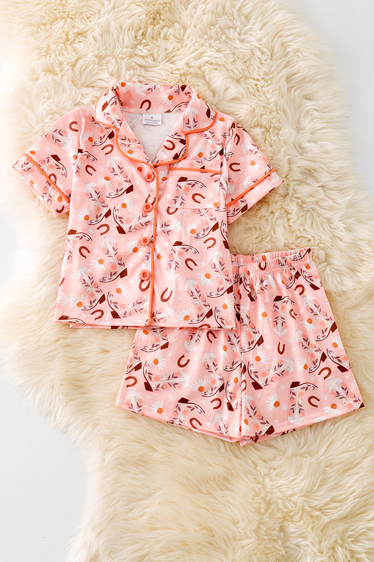 (WOMEN) Horseshoe, Daisy & cowgirl boot printed Women's pajamas.
