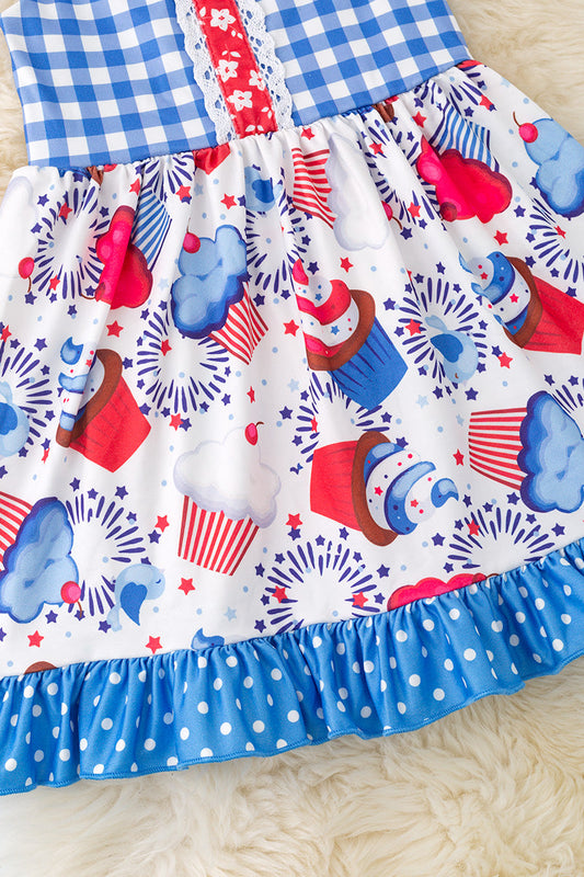 Cup cake printed patriotic baby onesie w/ruffle butt. RPG50579