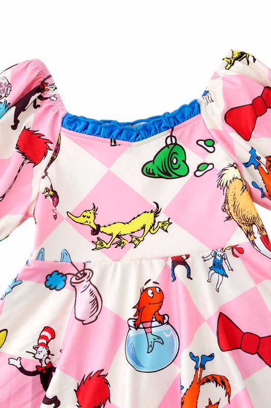 Dr.Seu_ Cartoon, floral dress & front pockets.