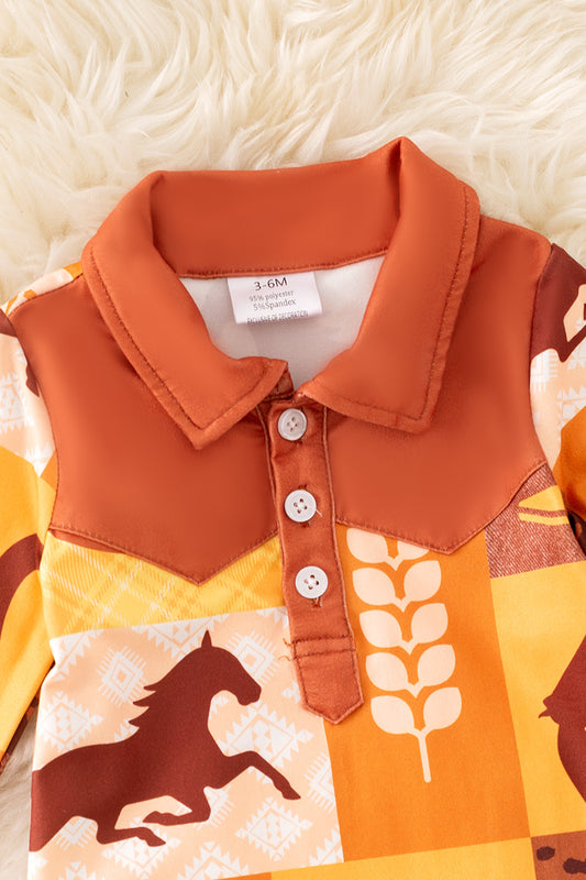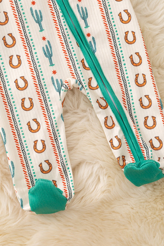 Wild western multi- printed baby onesie with fold over footie and hands.