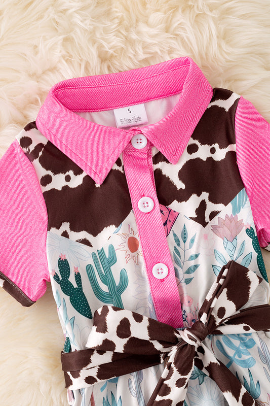 Pink & Orange western printed baby romper w/ruffle hem. RPG51317