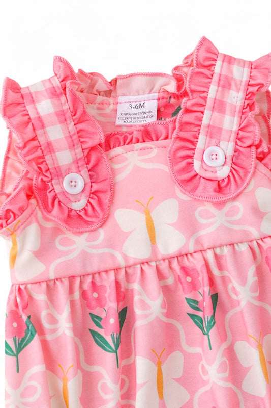 Fuschia M*nnie printed girls baby romper w/snaps. RPG50980