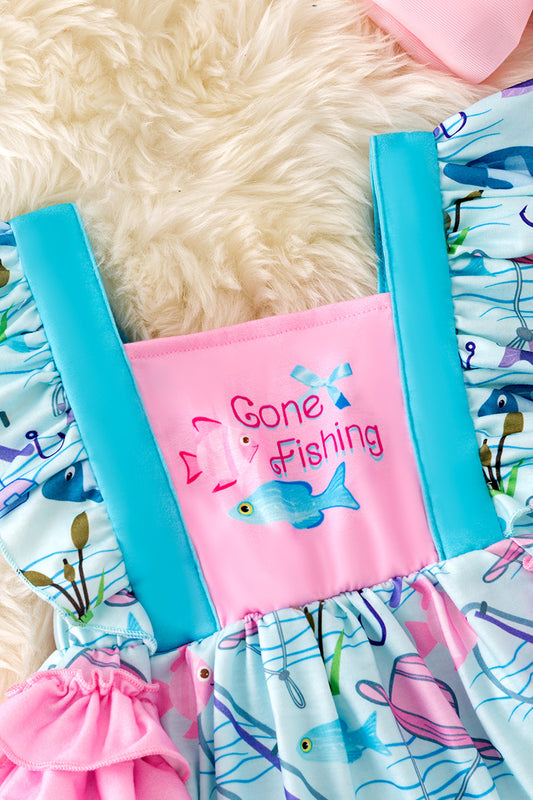 Ruffle butt, gone fishing baby onesie with snaps. RPG50601