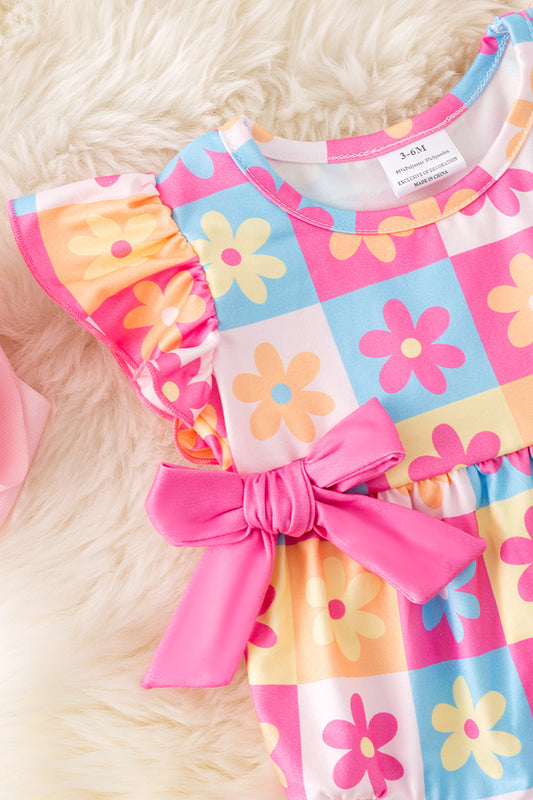 Daisy on pink ribbed printed baby onesie & yellow ribbed pants. RPG50976