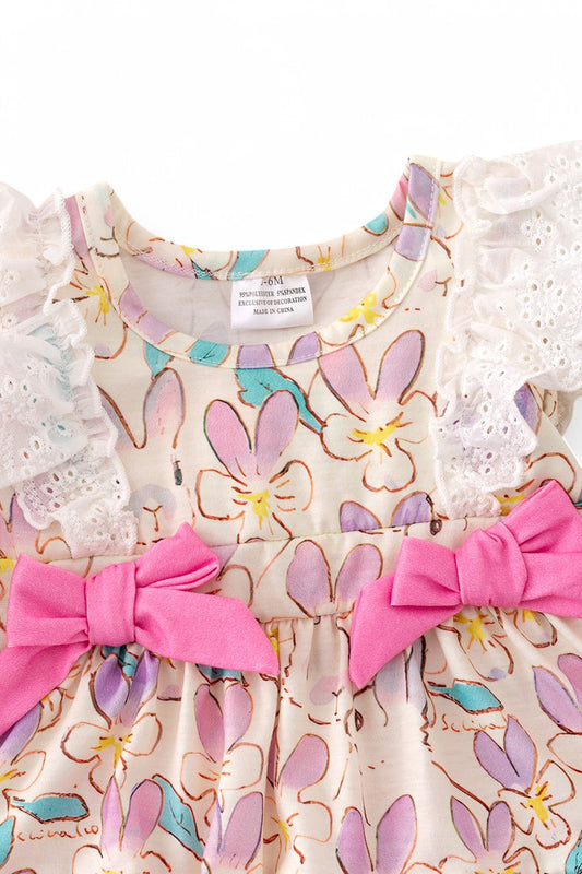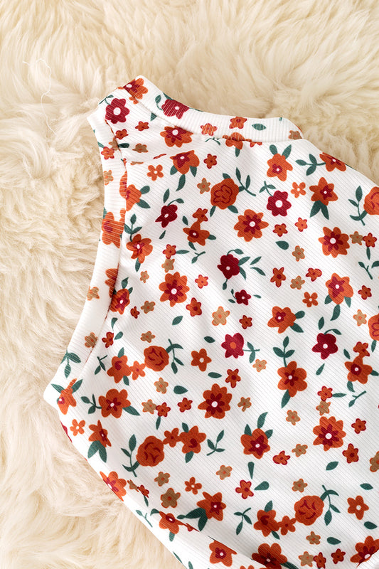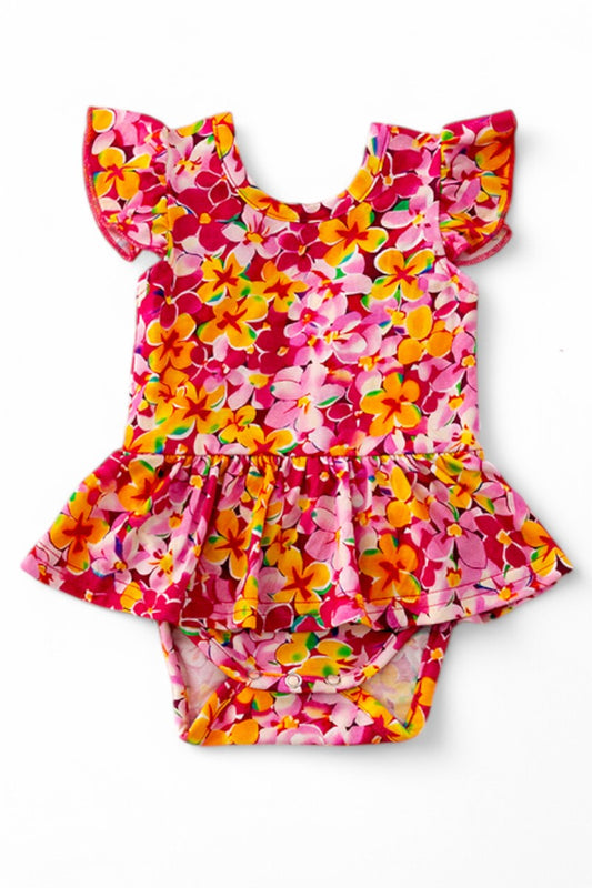 Cold shoulder ditsy floral onesie with snaps. RPG50974