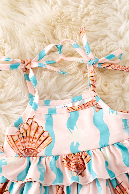 Seashell printed girls baby onesie with ruffle layer. RPG50642