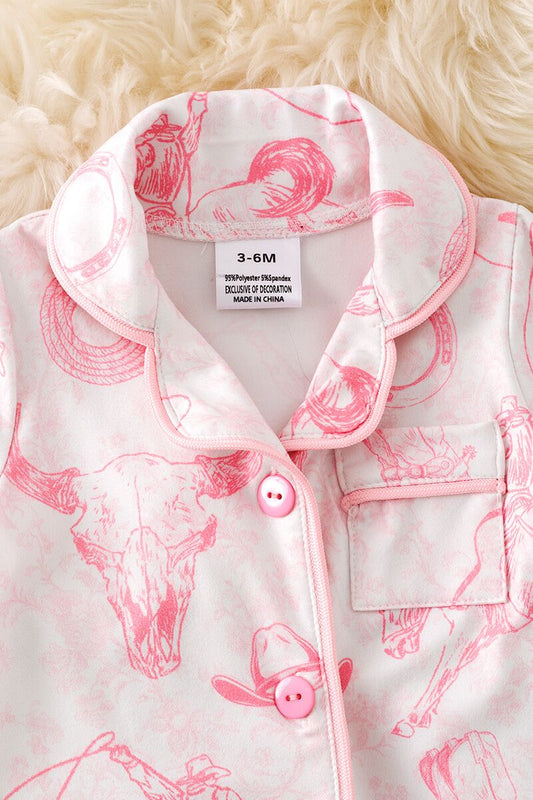 Cow skull, horse rider western printed baby pajamas. RPG50982
