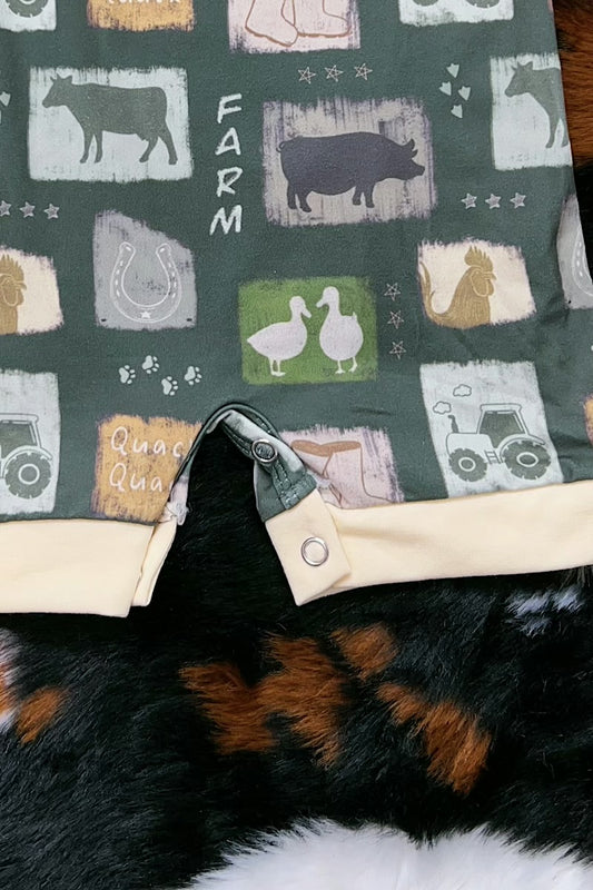 Farm animal embroidered baby onesie with ruffle. RPG50350