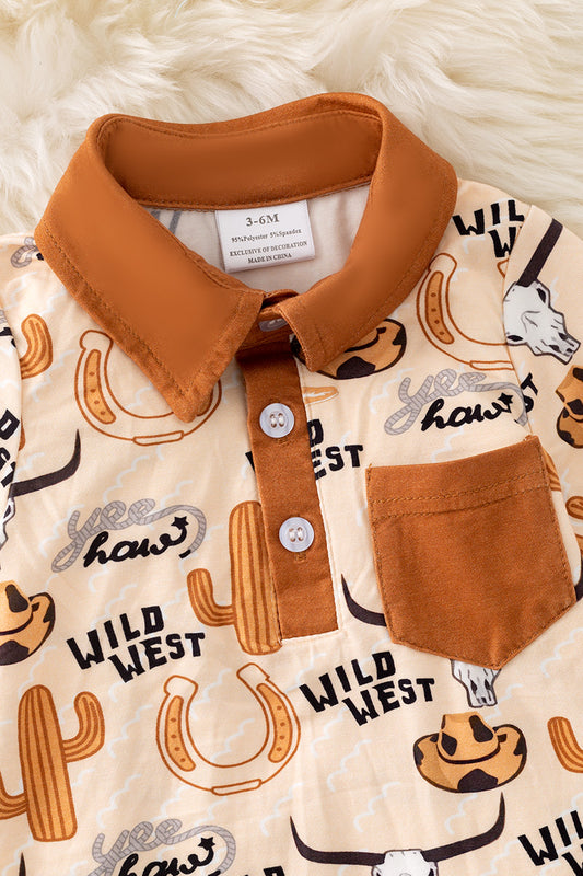 Catus printed western baby bodysuit w/snapps. (WESTERN) RPG52262