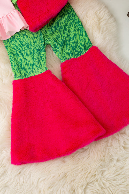 Christmas character 2 piece set on pink with green fur.