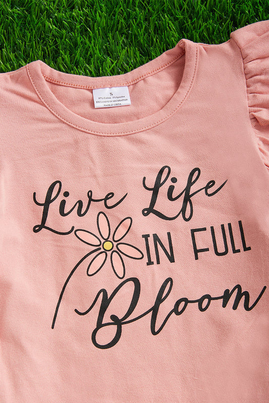 Pink "Live life in full bloom" Angel sleeve top