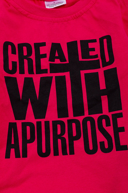 Fuchsia "Created with a purpose" printed tee shirt