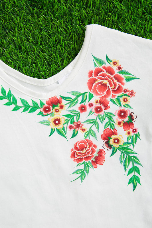 Faux embroidered floral top w/ ruffle sleeves