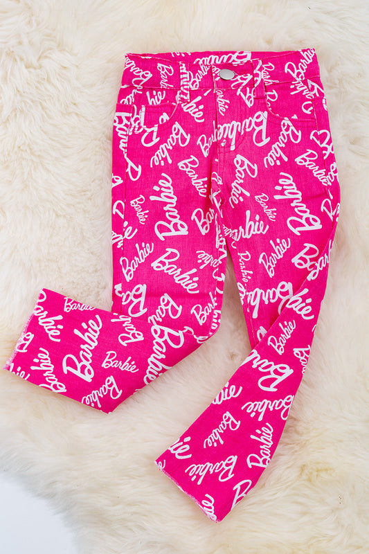 Hot pink Bar*** printed skinny jeans.