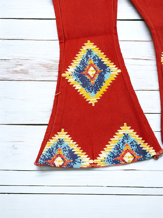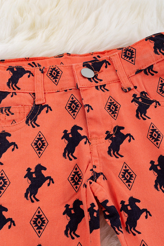 AZTEC ON BURNT ORANGE PRINTED DENIM PANTS FOR GIRLS. PNG65153060