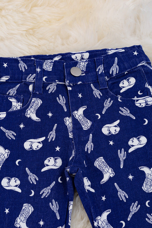 Navy blue western printed bootcut pants.