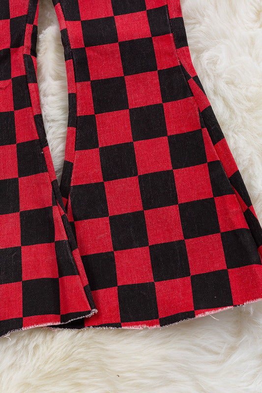 Red & black checkered bootcut pants.