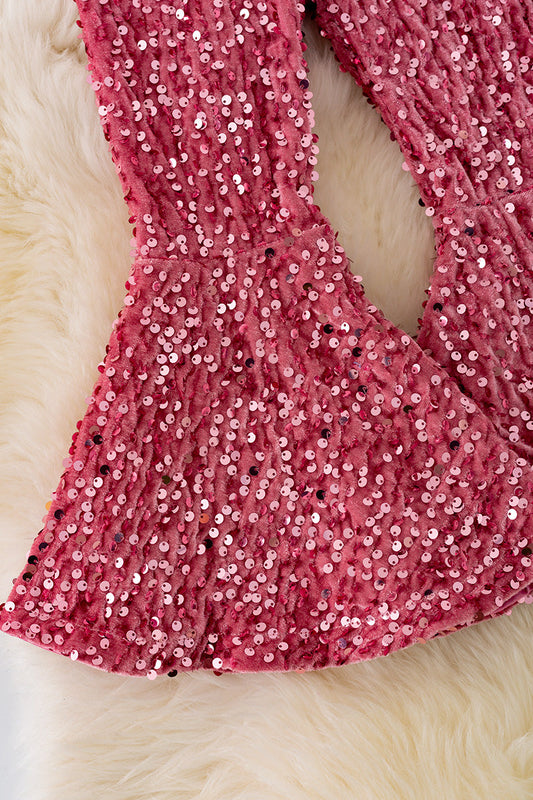 Fuchsia sequins printed bell bottoms.