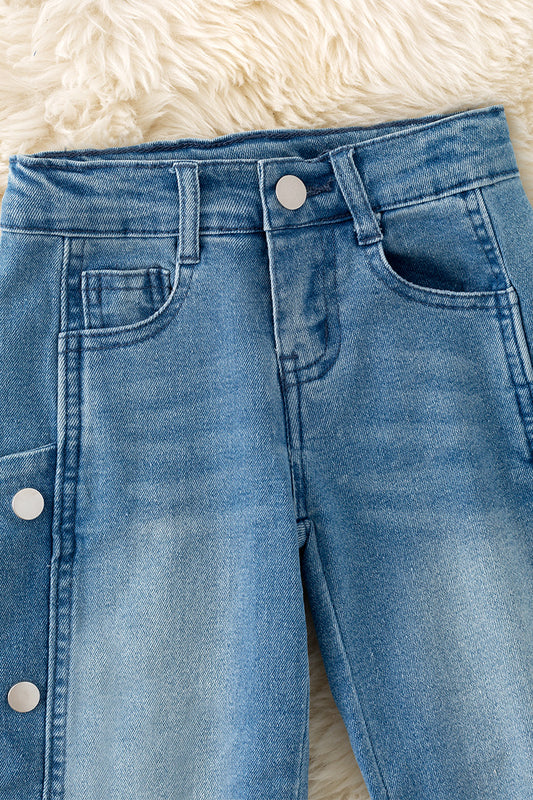 Side snap wide leg denim pants.