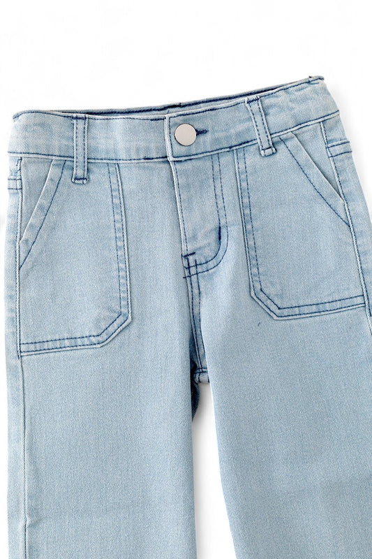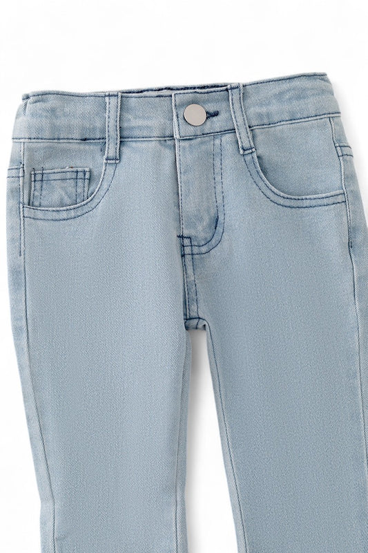 Lt.blue bootcut denim pants.