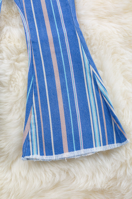 Multi-printed striped bootcut pants.