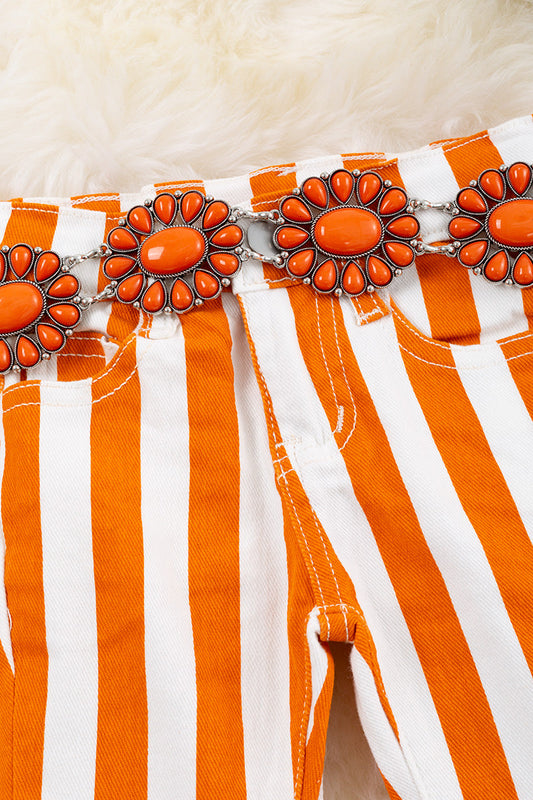 ORANGE DOUBLE LAYER DENIM BELL PANTS.