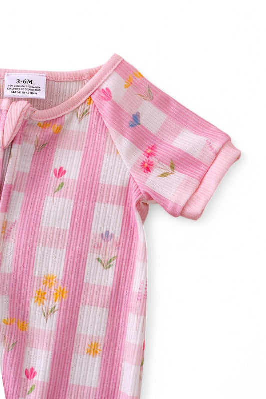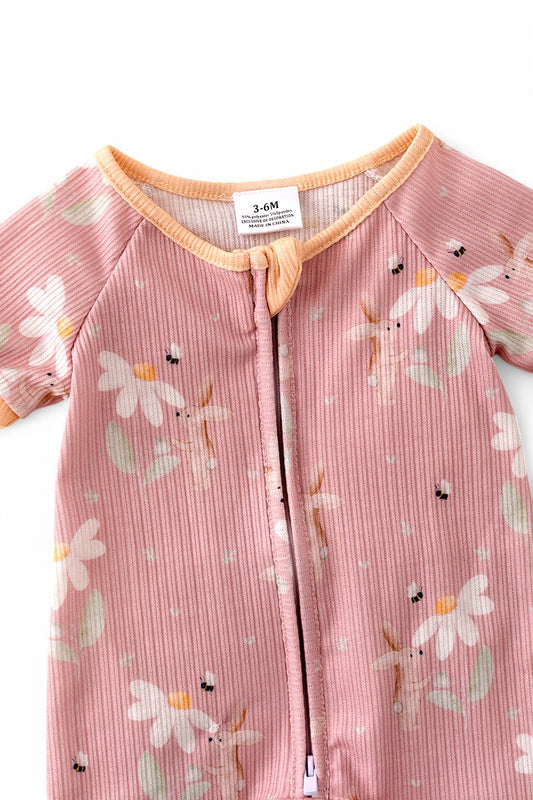 Adventure in the Safari girls coral baby romper with dual zipper.