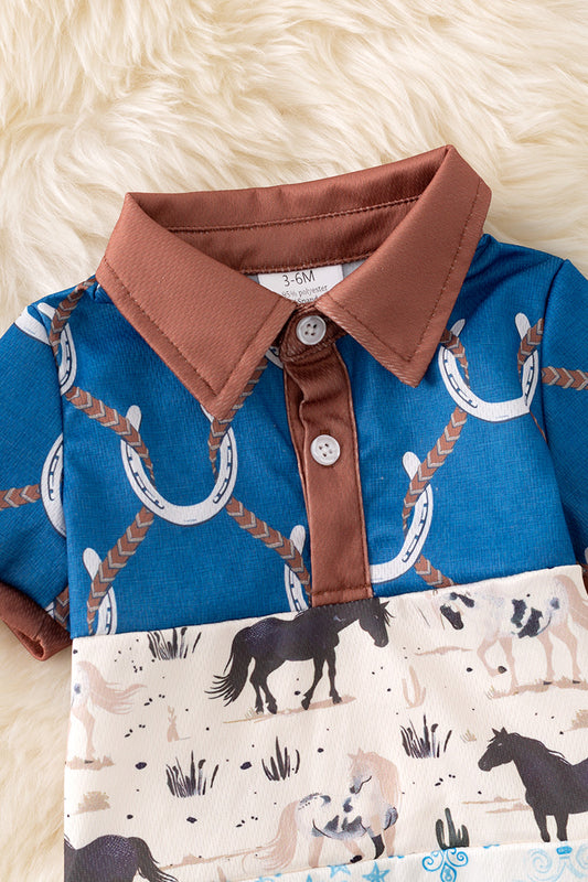 Cow skull, horse rider western printed baby pajamas. RPG50982
