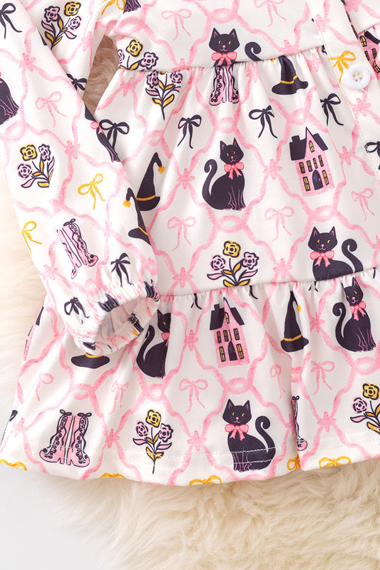Trick or treat" Pink tunic and pink bottoms. OFG51040