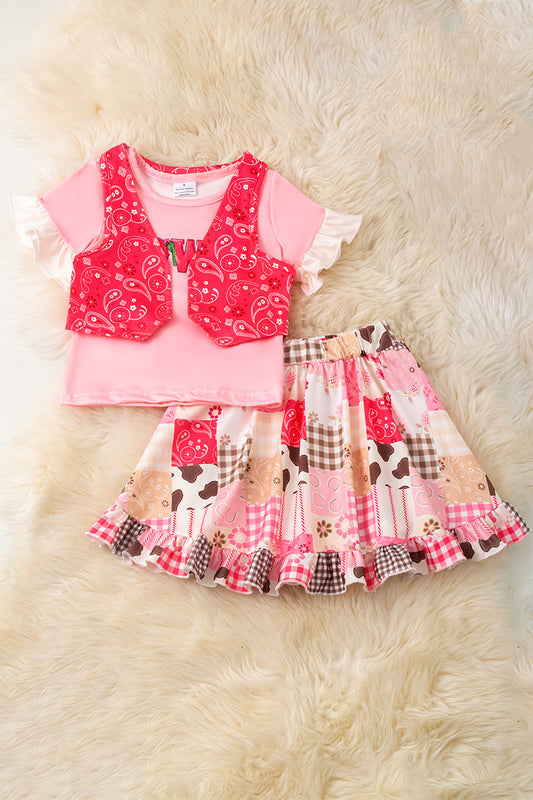 Howdy Cowgirl" multi-printed baby onesie & bloomers.
