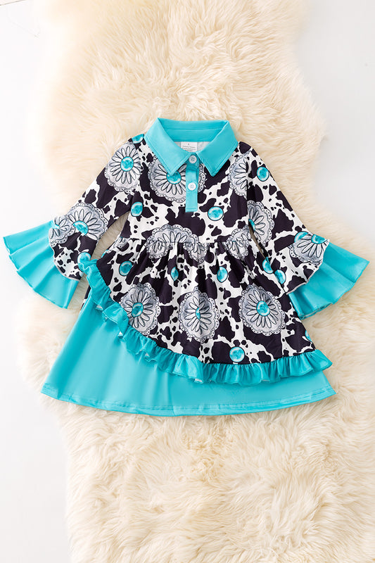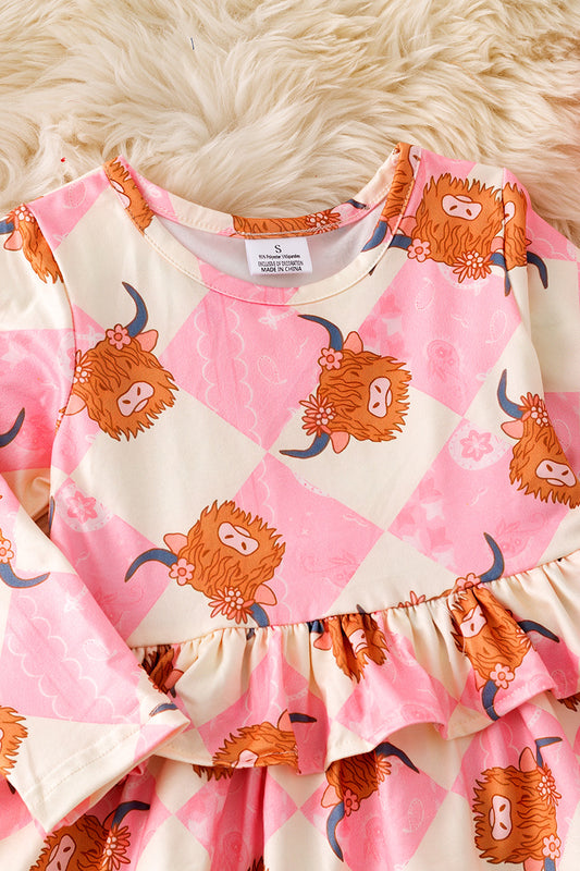 Highland cow printed ruffle tunic and wide cut pants. OFG51631