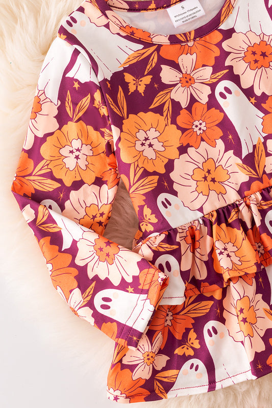 Mink Thanksgiving ruffle layered tunic and floral leggings. OFG51481