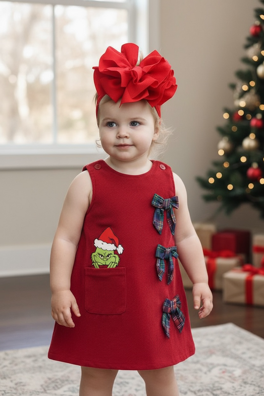Grinc* corduroy dress with side pocket and bows. DRG52443