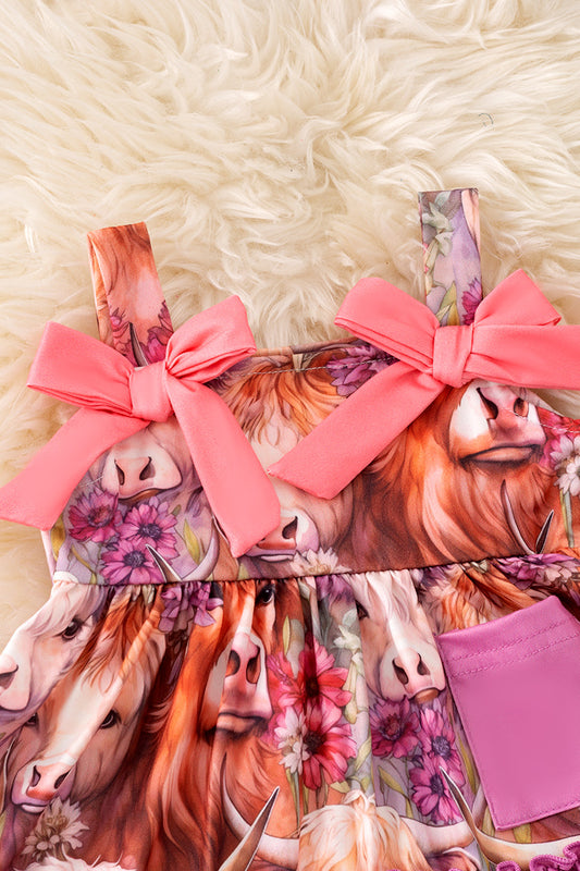 Highland cow printed top with matching bubble bloomers. RPG53361