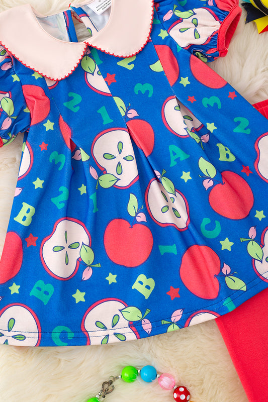 Coquette apple printed printed back to school 2 piece set. OFG50879