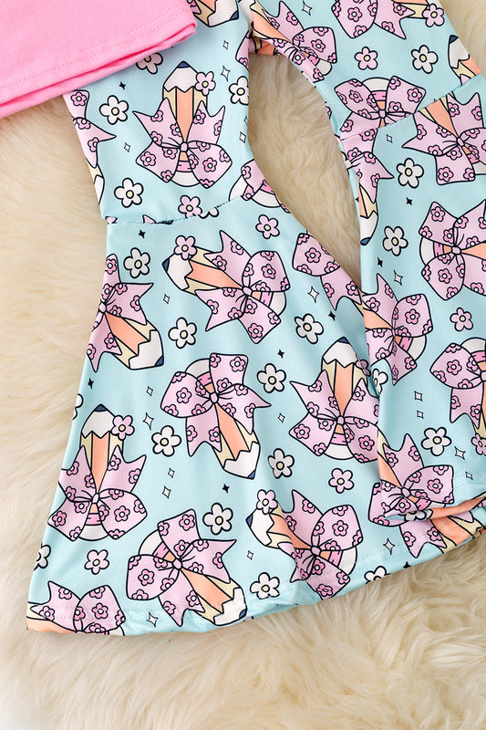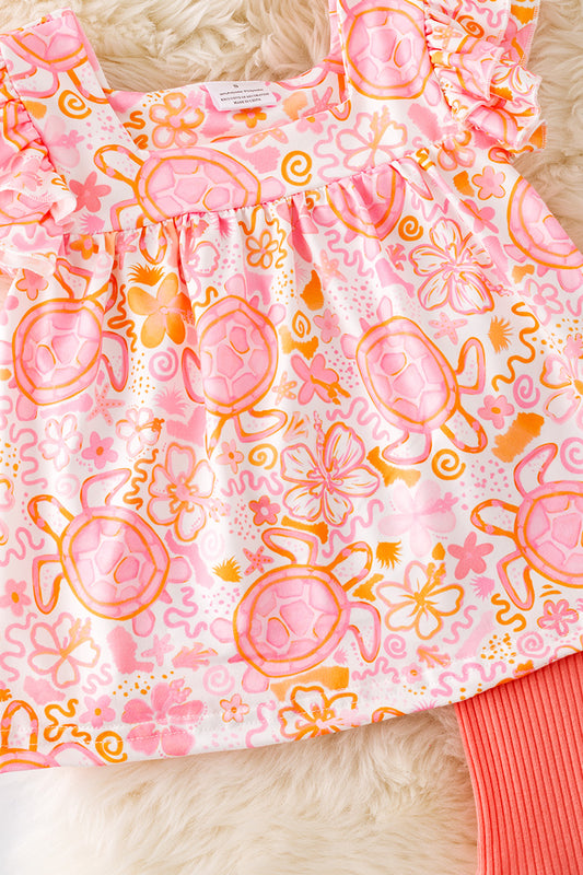 Pencil printed on pink ruffle sleeve top & aqua pencil printed bottoms. OFG50727