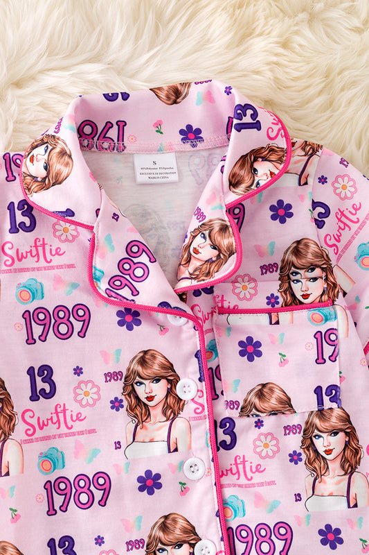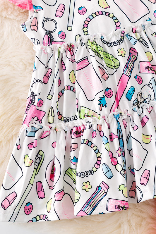 Multi-printed back to school tunic and pink ruffle shorts. OFG50746