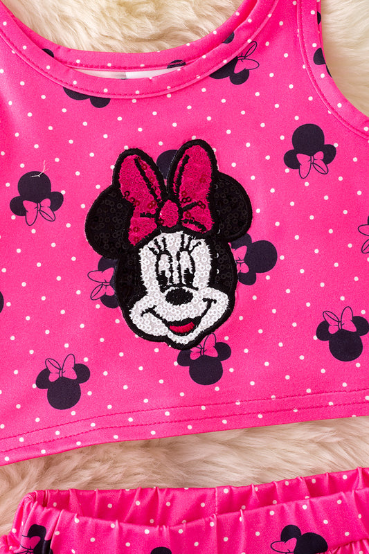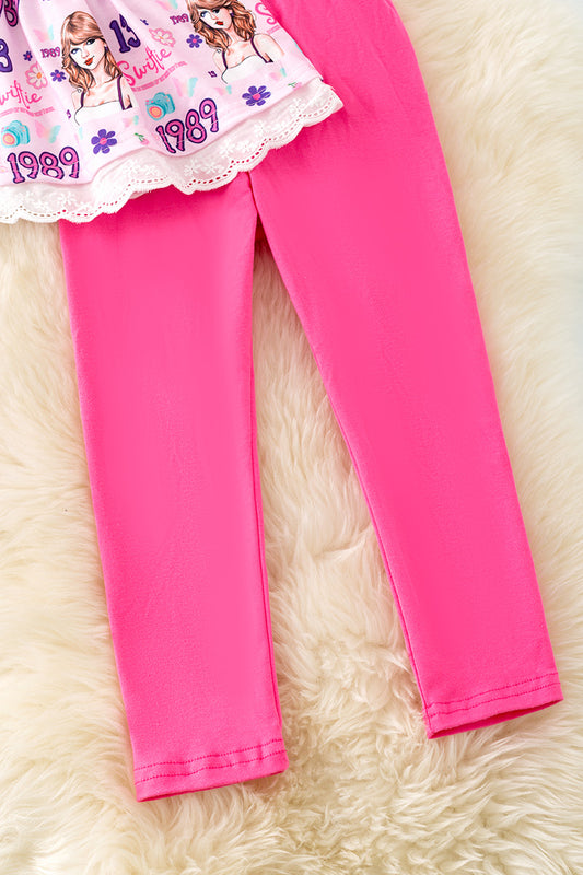 Fuchsia cartoon character printed girls 2 piece set. OFG50914