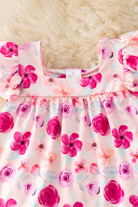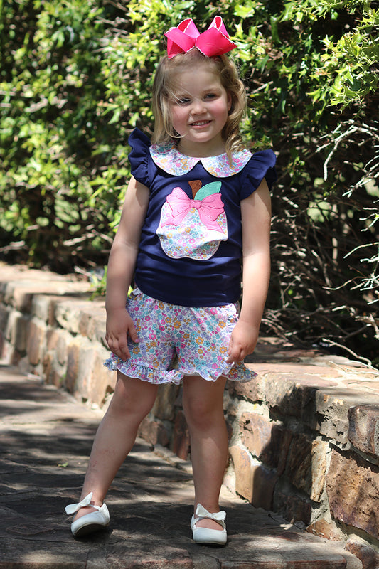 Floral apple applique top & floral ruffle shorts. OFG50718