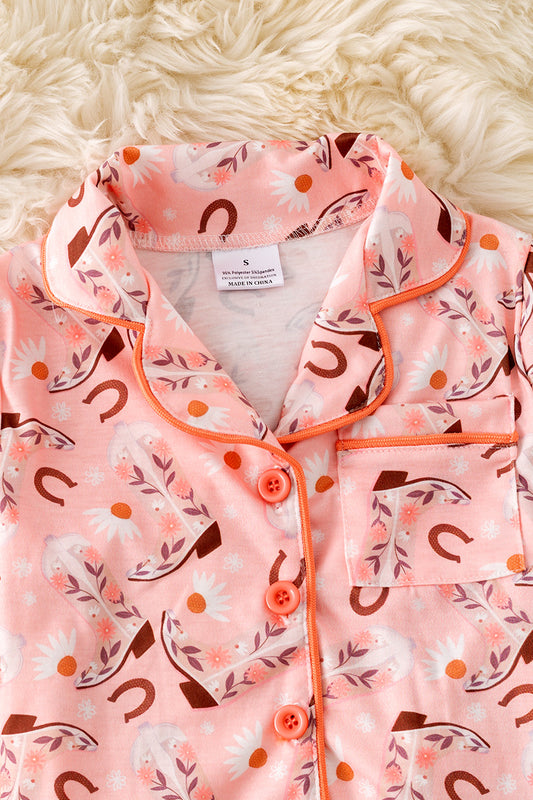 (WOMEN) Horseshoe, Daisy & cowgirl boot printed Women's pajamas.