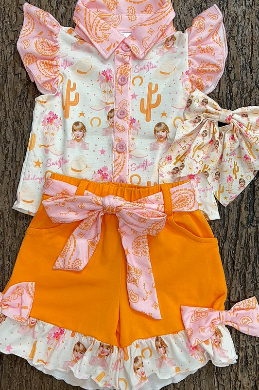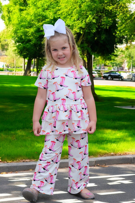 Cowgirl boot printed girls 2 piece set. GSPO031201-