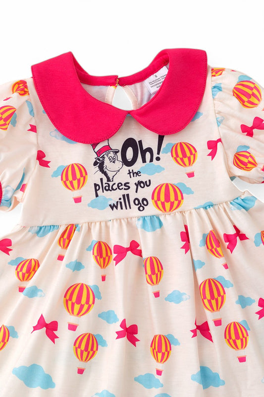 Oh the places we will go... Girls Character printed tunic & fuchsia leggings.