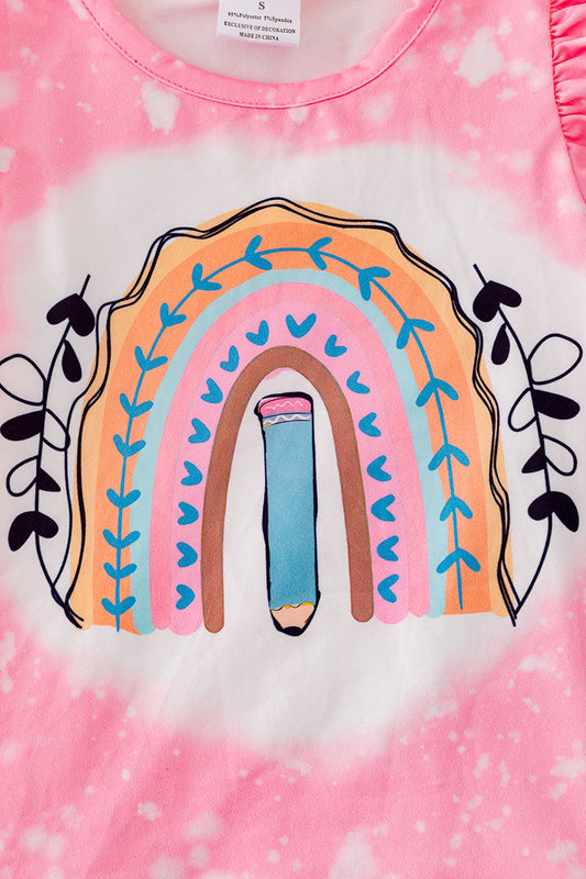 Girls back to school rainbow tee and stripe pants.