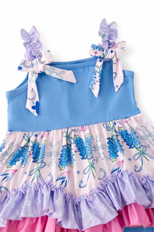 Bluebonnet printed ruffle tunic & blue shorts.