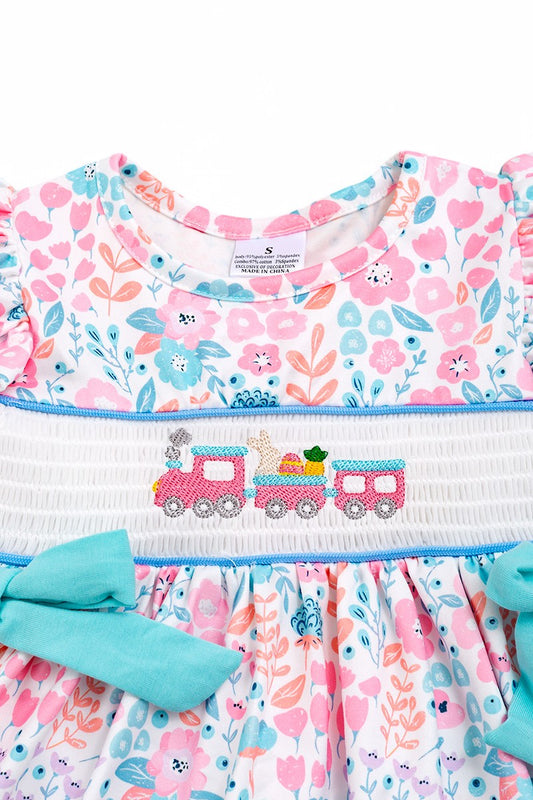 Pastel floral smocked tunic with side bows and cotton shorts.