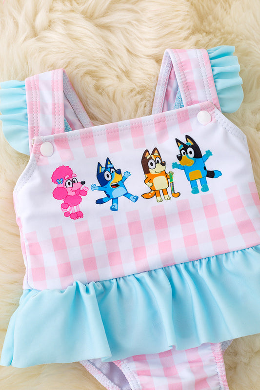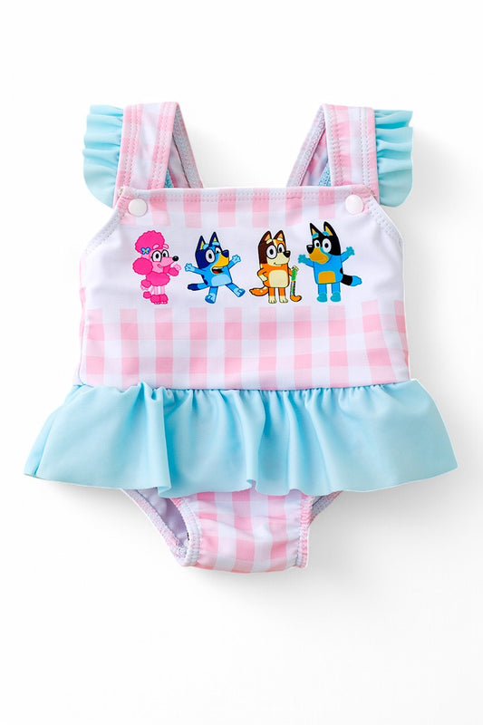 Super Cute gingham/character printed baby swimsuit. SWG50157